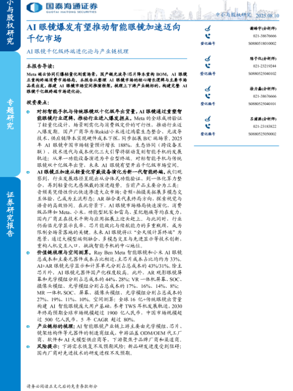 【国泰海通证券】【20250810】AI眼镜千亿级终端进化论与产业链梳理-36页