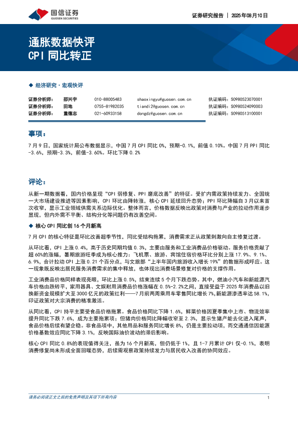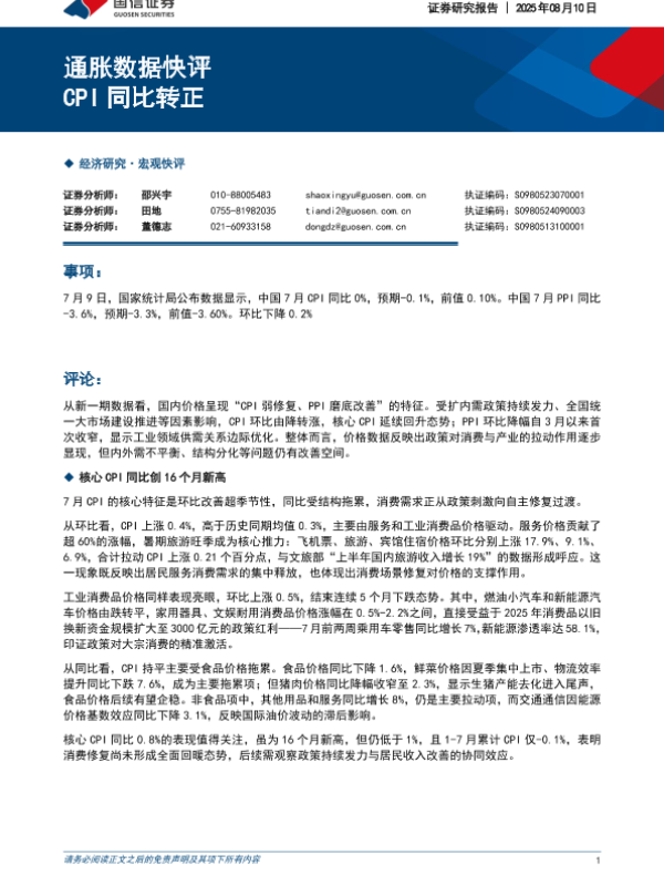 【国信证券】【20250810】通胀数据快评:CPI同比转正-5页