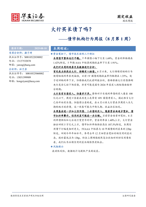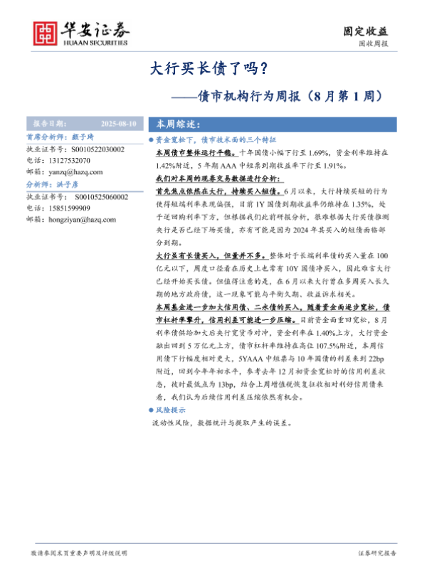 【华安证券】【20250810】债市机构行为周报(8月第1周):大行买长债了吗?-17页