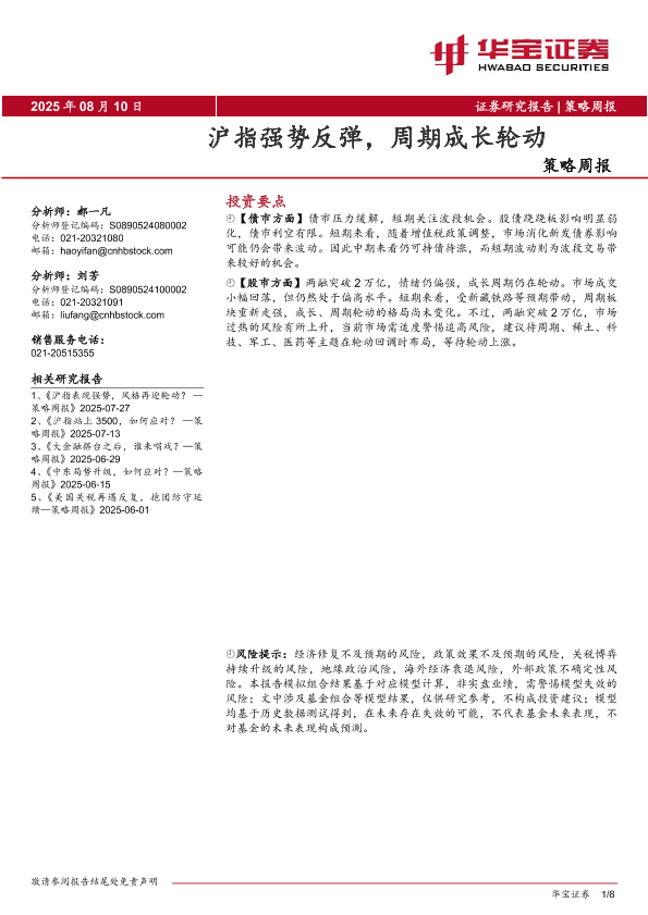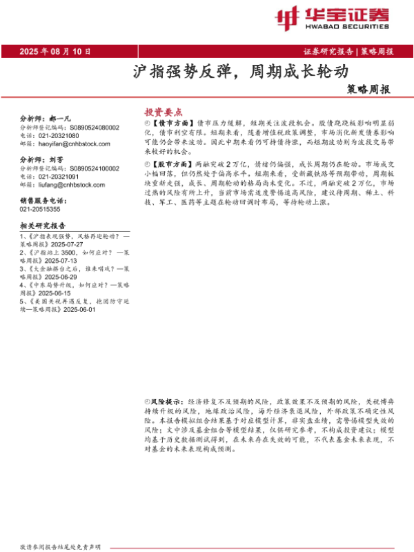 【华宝证券】【20250810】策略周报:沪指强势反弹,周期成长轮动-8页
