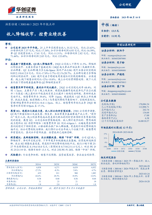 【华创证券】【20250810】2025年中报点评:收入降幅收窄,控费业绩改善-6页