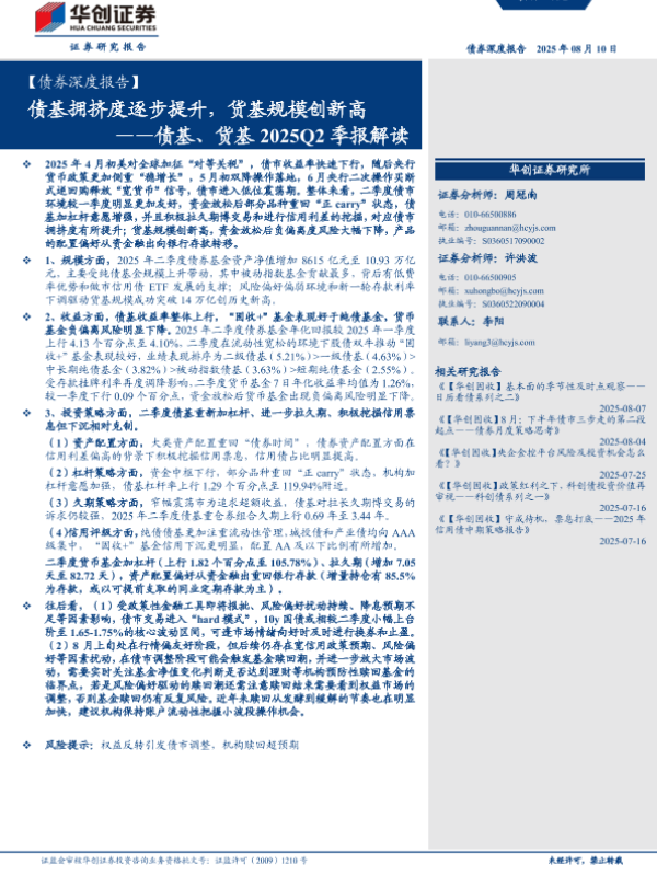 【华创证券】【20250810】债基、货基2025Q2季报解读:债基拥挤度逐步提升,货基规模创新高-32页