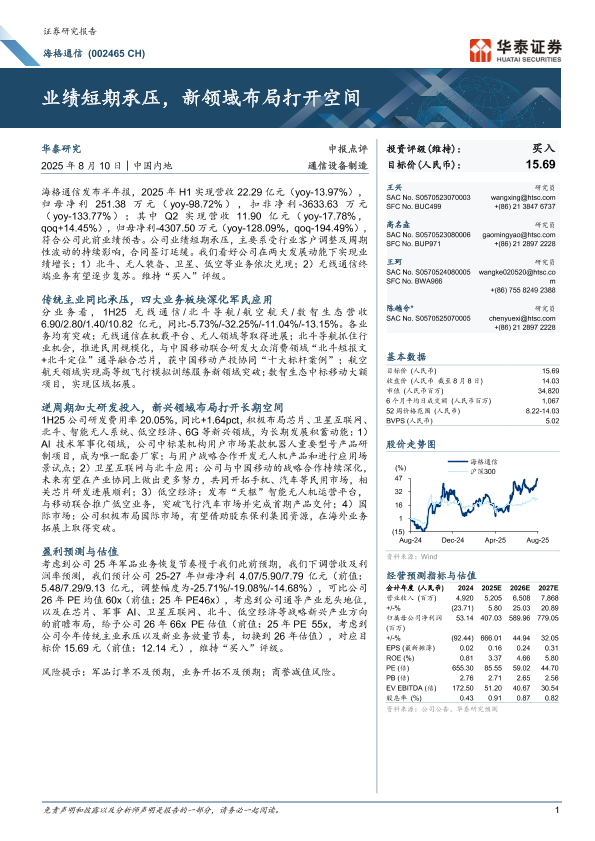 买入评级 证券研究 新领域布局 海格通信 业绩分析