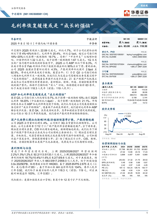 国产替代 中芯国际 财务预测 毛利率 半导体制造