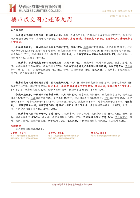 【华西证券】【20250809】楼巿成交同比连降九周-13页