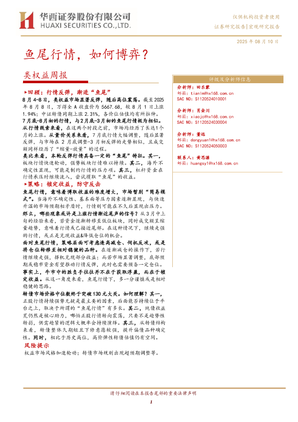 【华西证券】【20250810】类权益周报:鱼尾行情,如何博弈?-26页