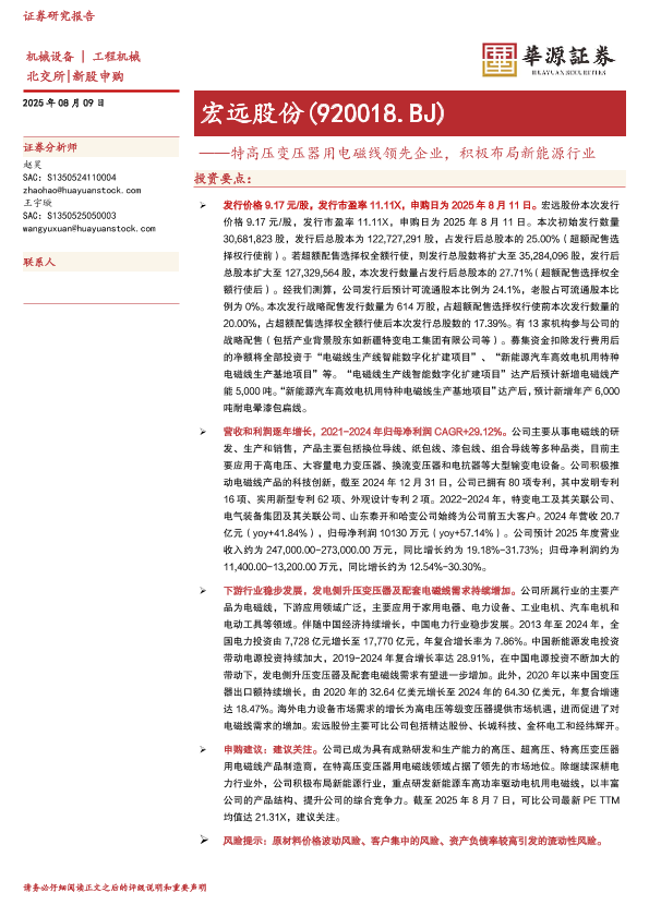 【华源证券】【20250809】宏远股份-特高压变压器用电磁线领先企业,积极布局新能源行业-18页