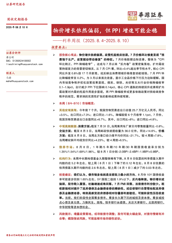 【华源证券】【20250810】利率周报:物价增长依然偏弱,但PPI增速可能企稳-18页