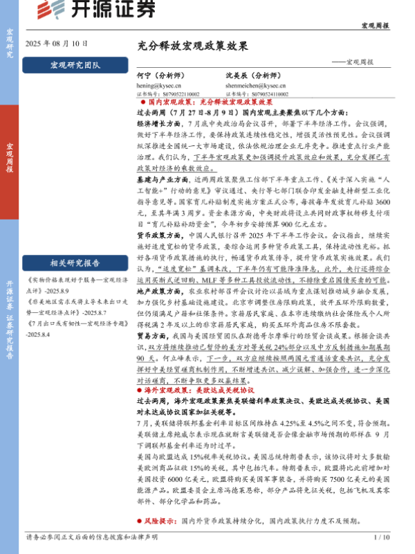 【开源证券】【20250810】充分释放宏观政策效果-10页
