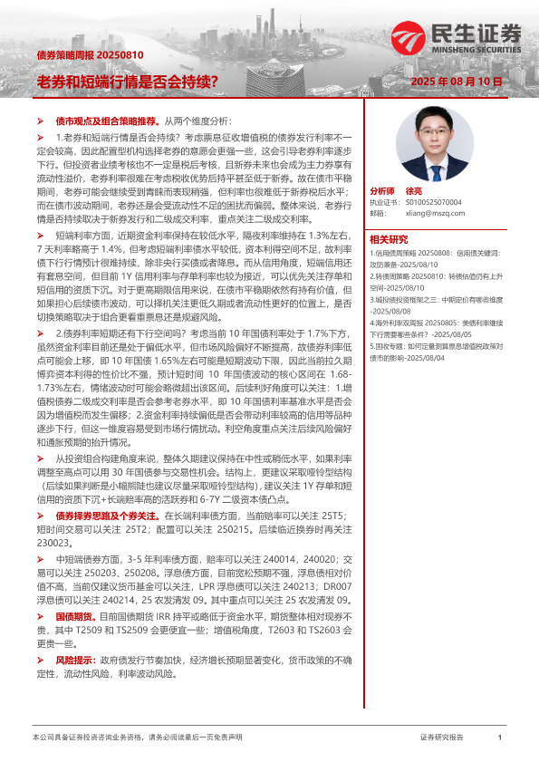 【民生证券】【20250810】债券策略周报:老券和短端行情是否会持续?-25页
