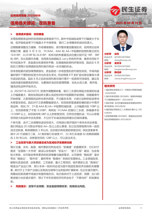 【民生证券】【20250810】信用债周策略:信用债关键词,攻防兼备-23页