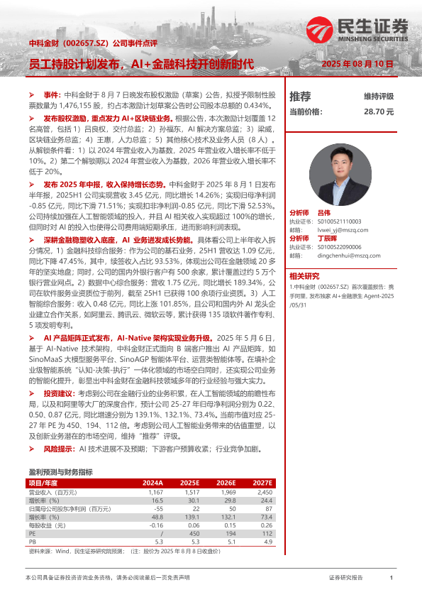 【民生证券】【20250810】公司事件点评:员工持股计划发布,AI+金融科技开创新时代-3页