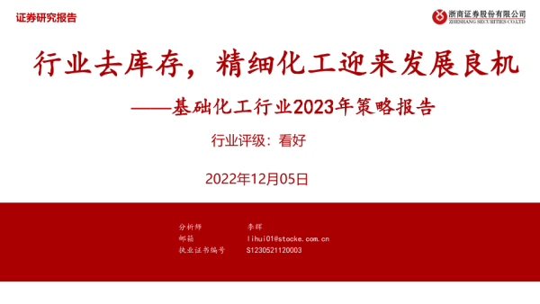 【浙商证券】【20221205】基础化工行业2023年策略报告:行业去库存,精细化工迎来发展良机-39页