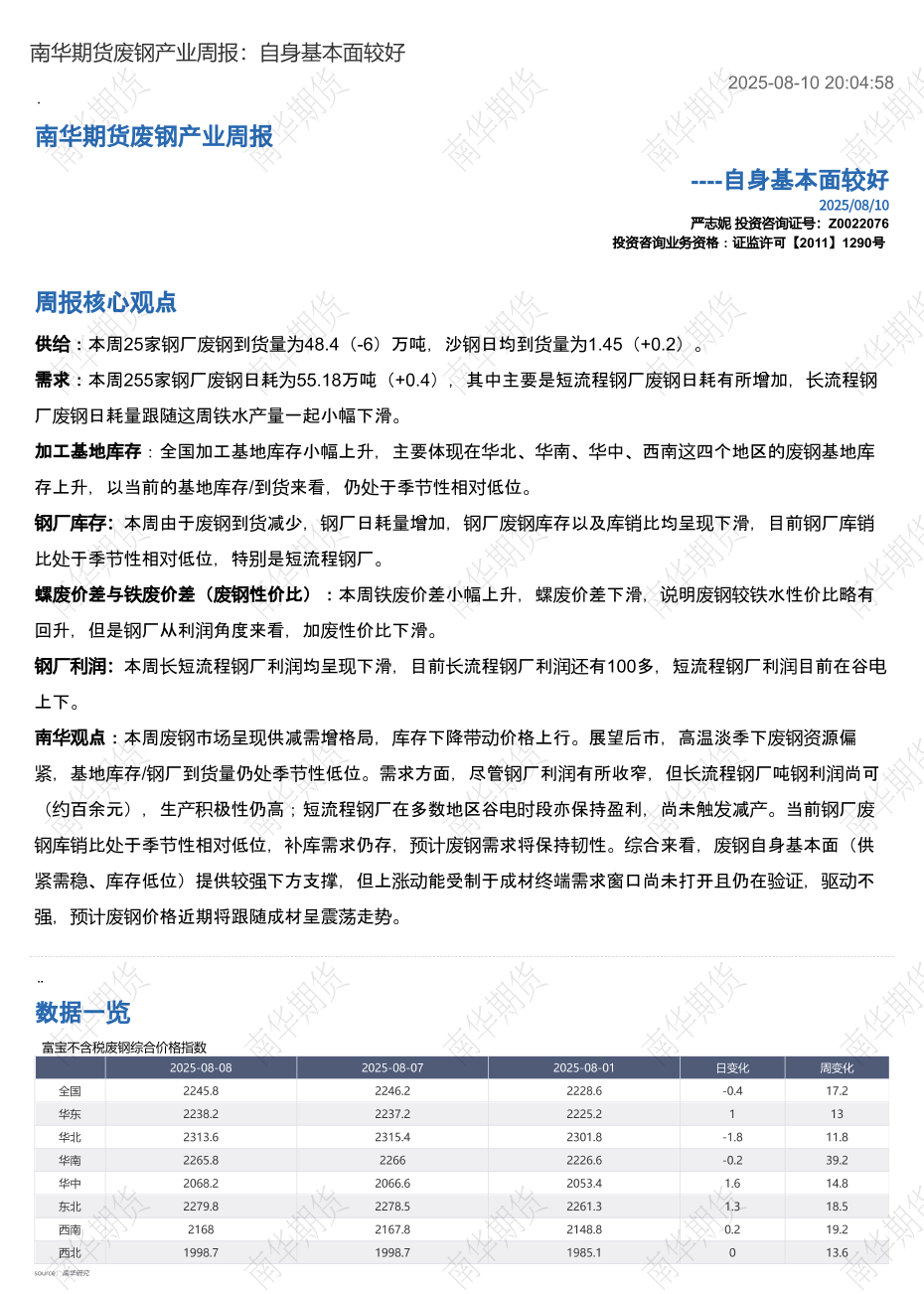 【南华期货】【20250810】废钢产业周报:自身基本面较好-13页