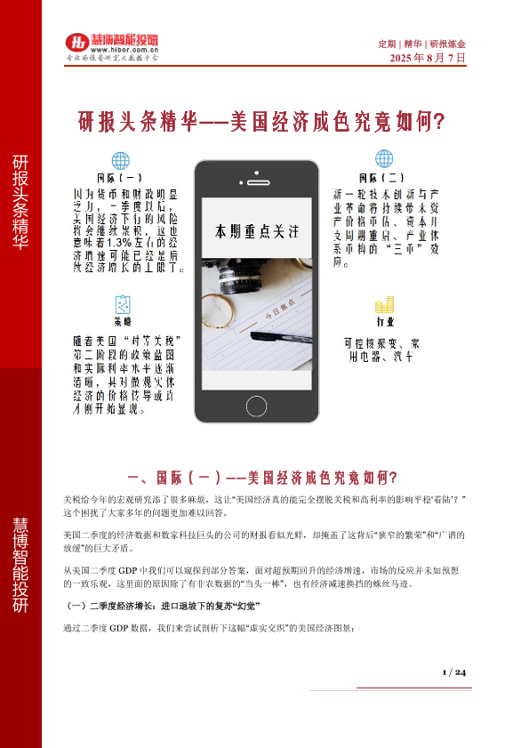【慧博智能投研】【20250807】美国经济成色究竟如何?-24页