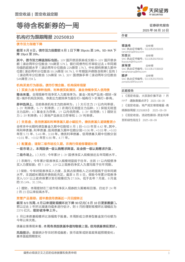 【天风证券】【20250810】机构行为跟踪周报:等待含税新券的一周-18页