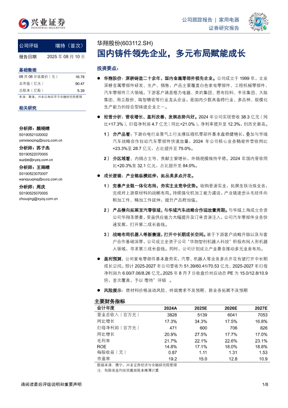 【兴业证券】【20250810】华翔股份-国内铸件领先企业,多元布局赋能成长-8页