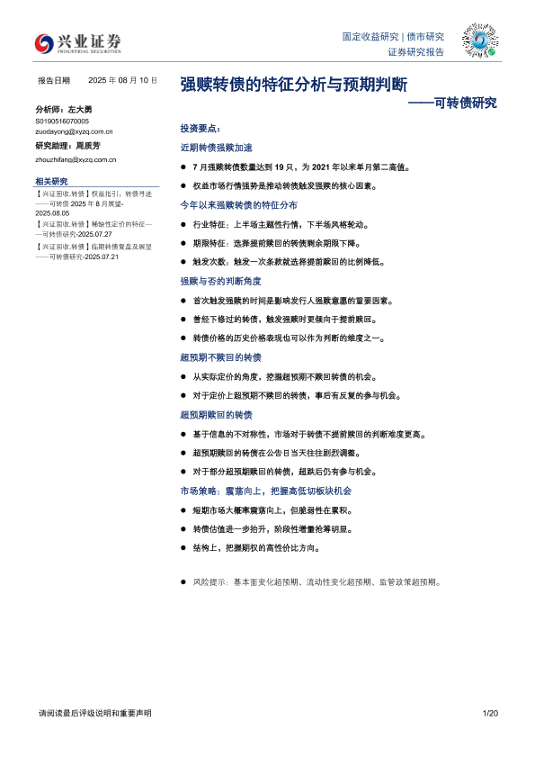 【兴业证券】【20250810】可转债研究:强赎转债的特征分析与预期判断-20页