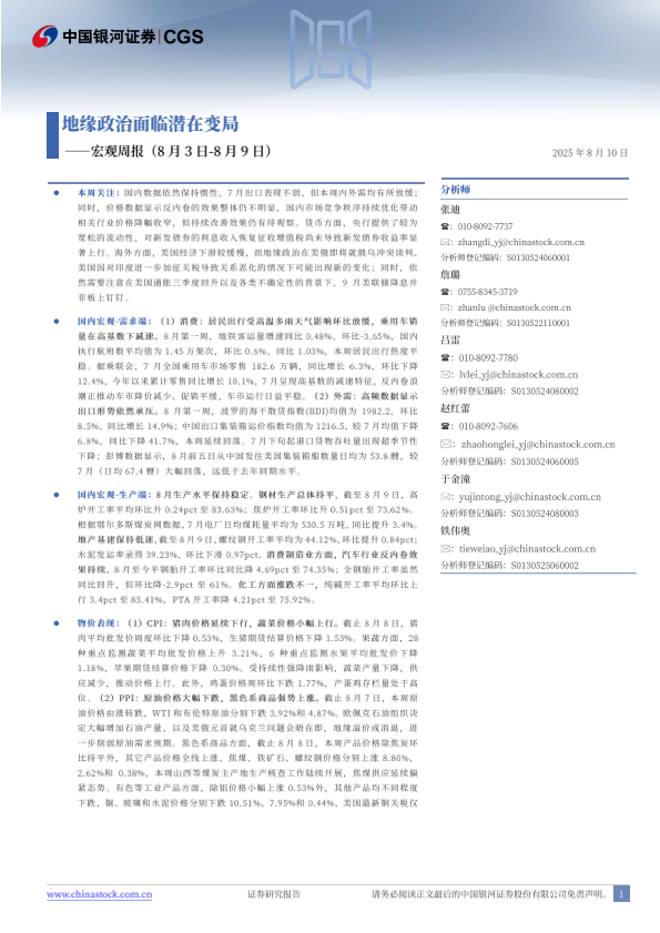 【银河证券】【20250810】宏观周报:地缘政治面临潜在变局-7页
