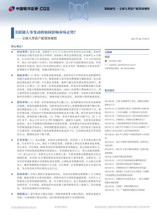 【银河证券】【20250809】策略研究·全球大类资产配置周观察:美联储人事变动将如何影响市场走势?-11页