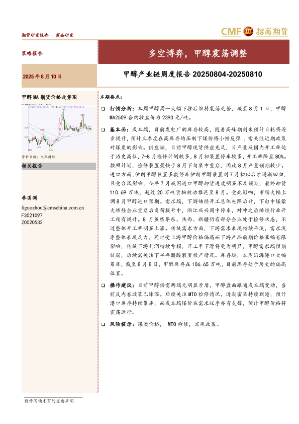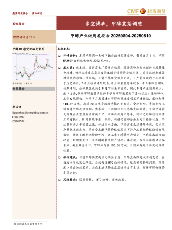 【招商期货】【20250810】甲醇产业链周度报告:多空博弈,甲醇震荡调整-17页