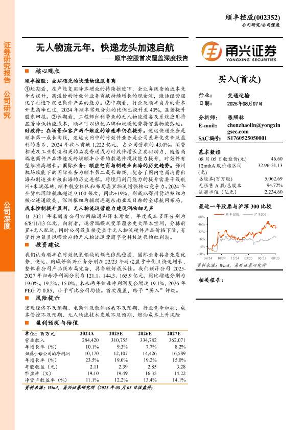 顺丰控股 快递行业 无人物流 国际业务 成本控制