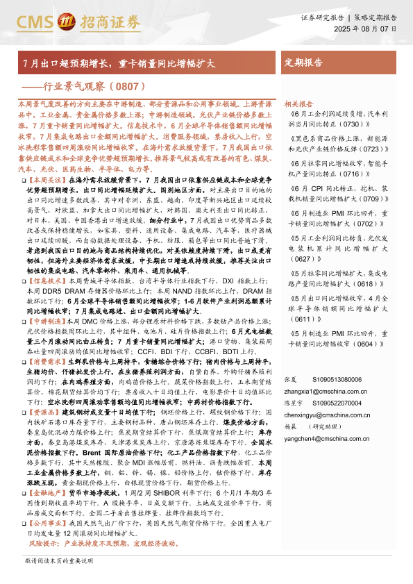 【海通证券】【20250807】行业景气观察:7月出口超预期增长,重卡销量同比增幅扩大-32页