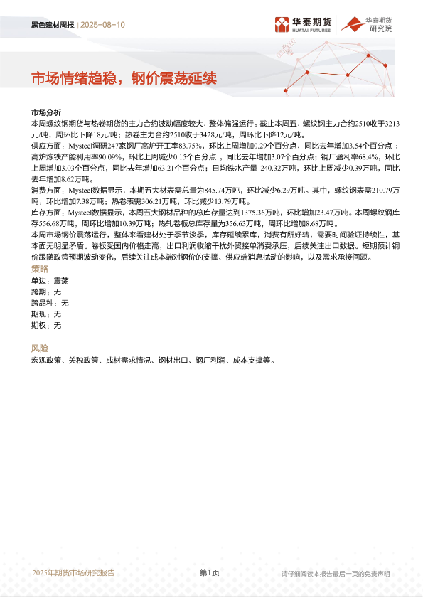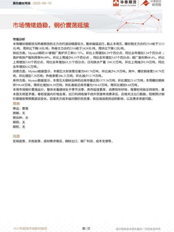 【华泰期货】【20250810】黑色建材周报:市场情绪趋稳,钢价震荡延续-10页