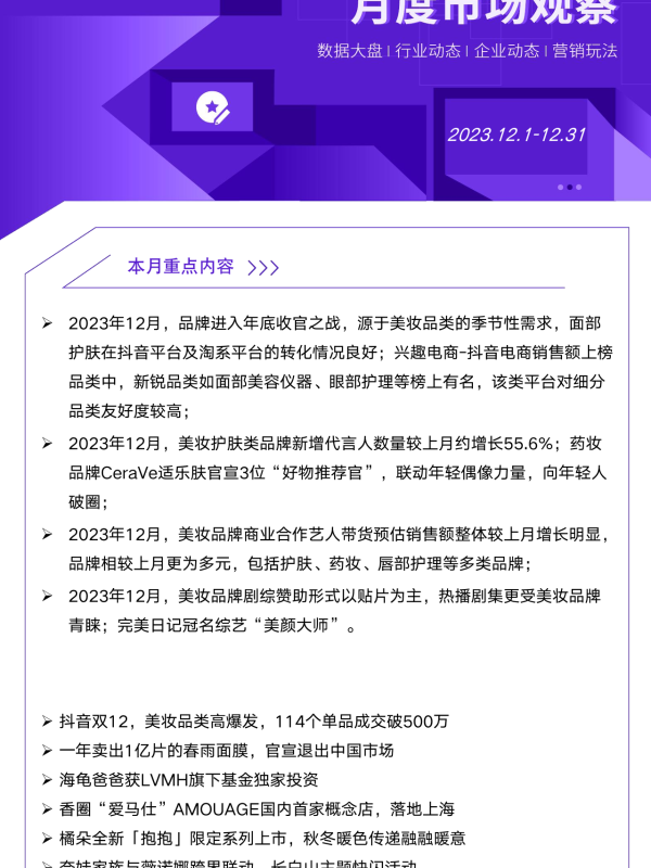 【艺恩】【202312】2023年12月美妆行业洞察报告-10页