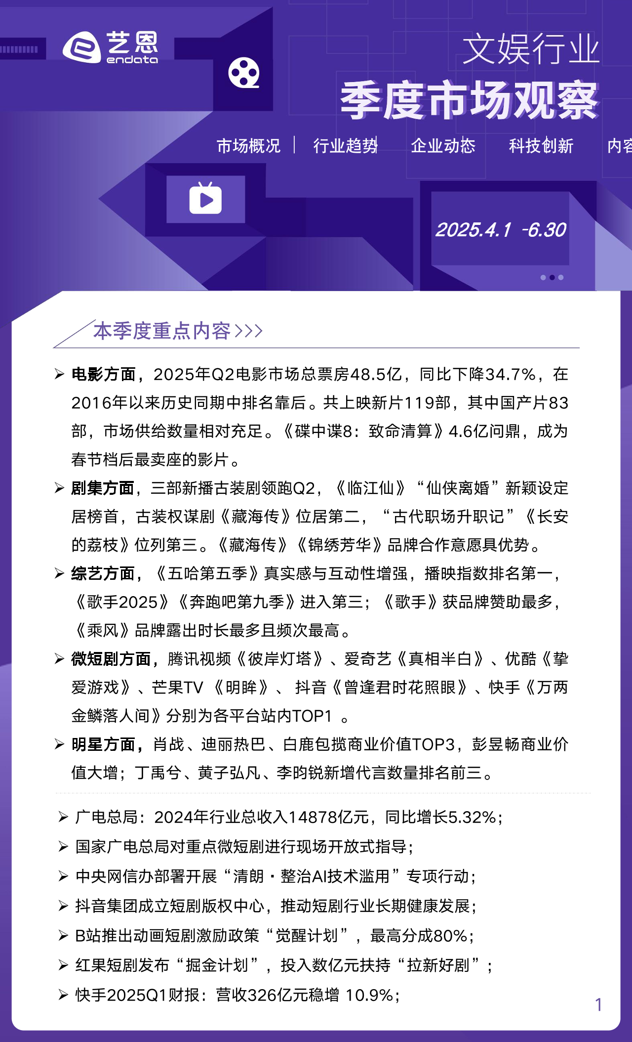 【艺恩】【202507】2025年Q2文娱行业市场观察-25页