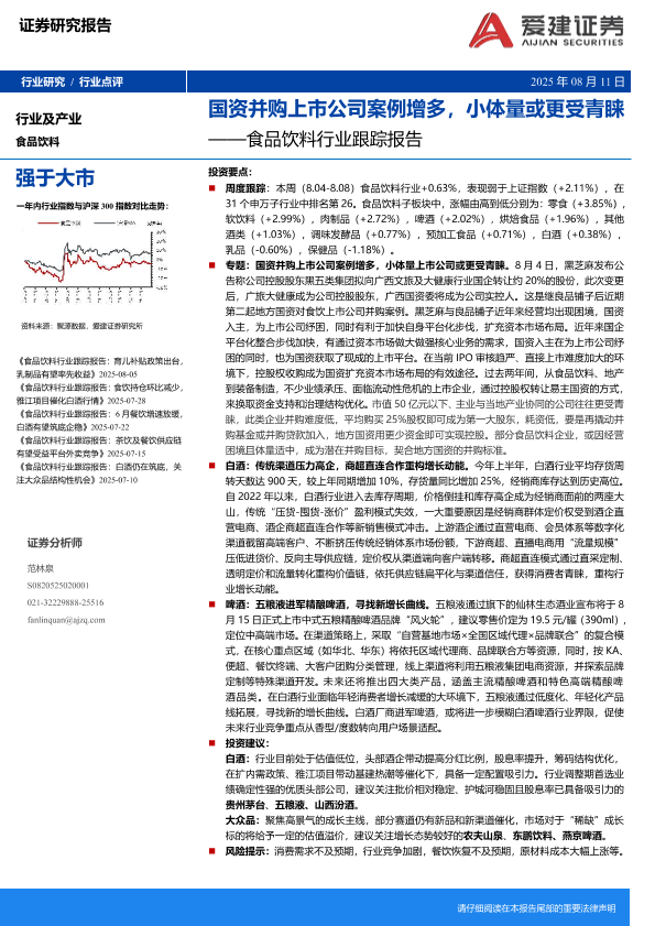 【爱建证券】【20250811】食品饮料行业跟踪报告:国资并购上市公司案例增多,小体量或更受青睐-12页