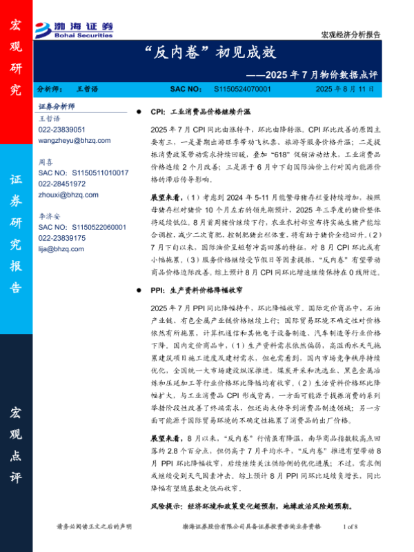 【渤海证券】【20250811】2025年7月物价数据点评:“反内卷”初见成效-8页