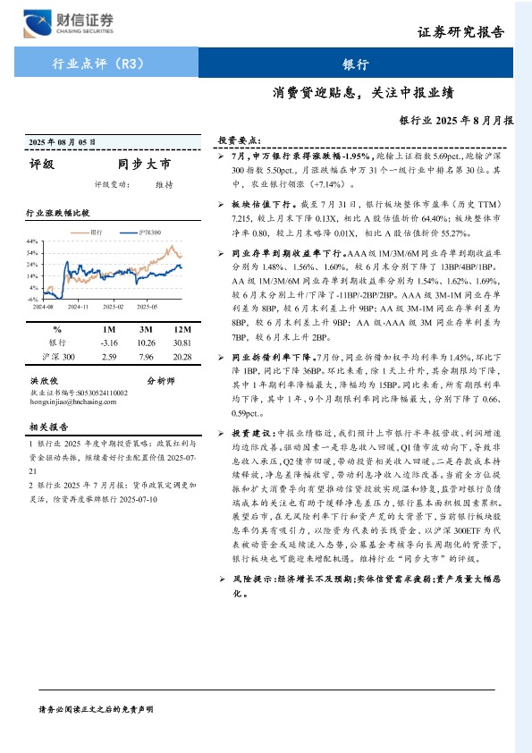 【财信证券】【20250805】银行业2025年8月月报:消费贷迎贴息,关注中报业绩-8页