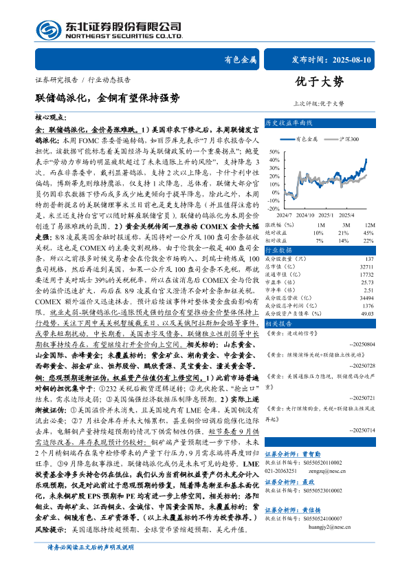 【东北证券】【20250810】联储鸽派化,金铜有望保持强势-11页