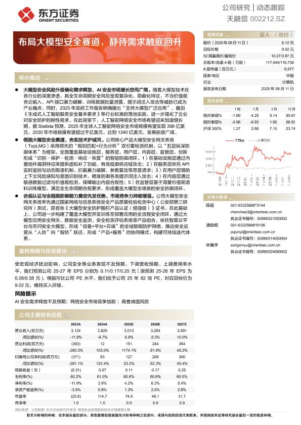 【东方证券】【20250811】布局大模型安全赛道,静待需求触底回升-5页