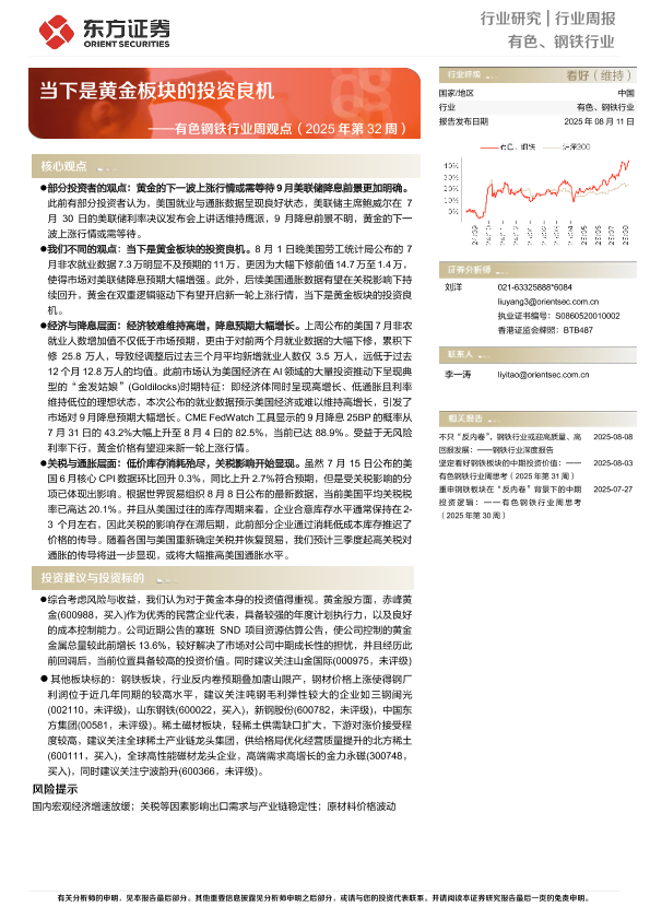 【东方证券】【20250811】有色钢铁行业周观点:当下是黄金板块的投资良机-25页