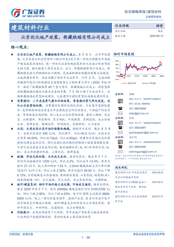 【广发证券】【20250810】北京优化地产政策,新藏铁路有限公司成立-25页
