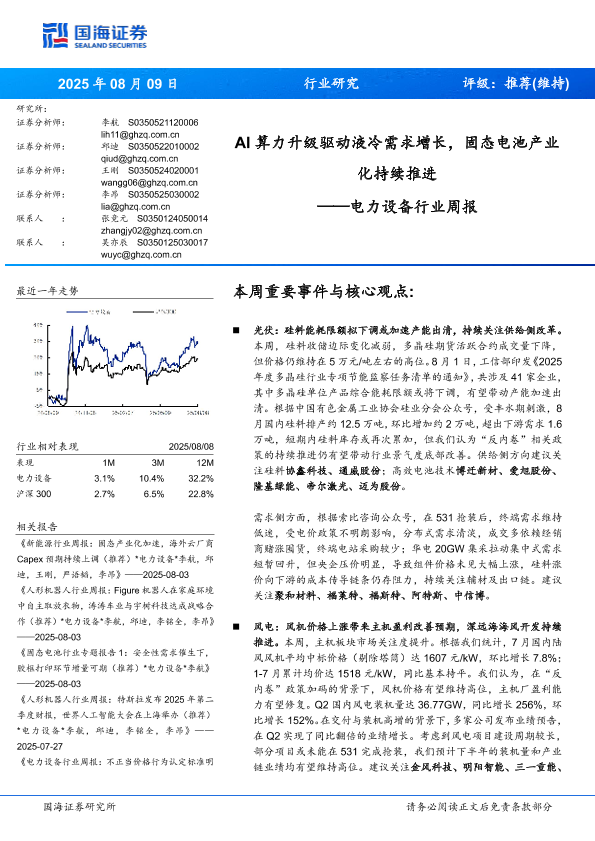 【国海证券】【20250809】AI算力升级驱动液冷需求增长,固态电池产业化持续推进-6页