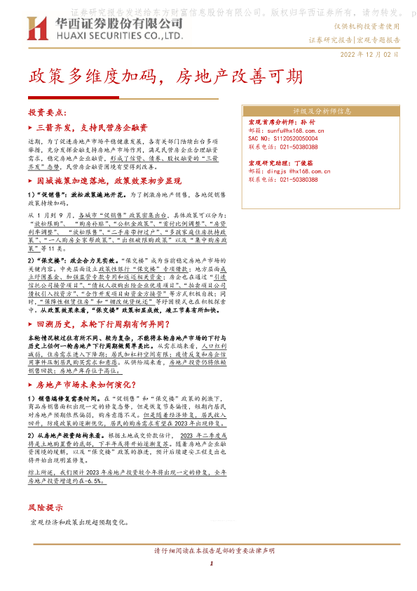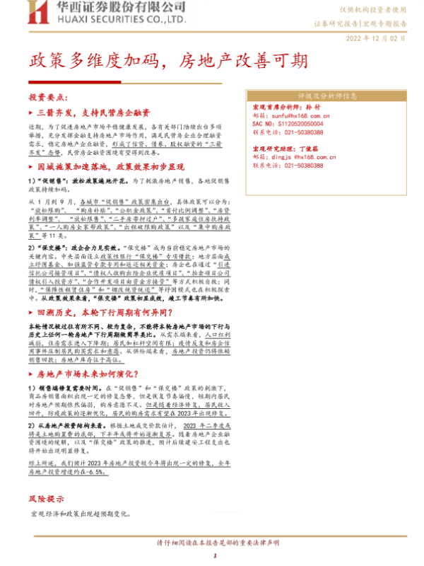 【华西证券】【20221202】宏观专题报告:政策多维度加码,房地产改善可期-21页