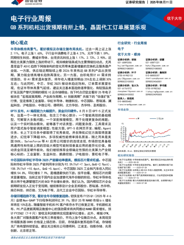 【国信证券】【20250811】电子行业周报:GB系列机柜出货预期有所上修,晶圆代工订单展望乐观-10页