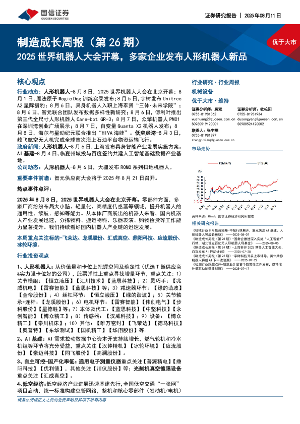 【国信证券】【20250811】机械设备行业制造成长周报(第26期):2025世界机器人大会开幕,多家企业发布人形机器人新品-11页