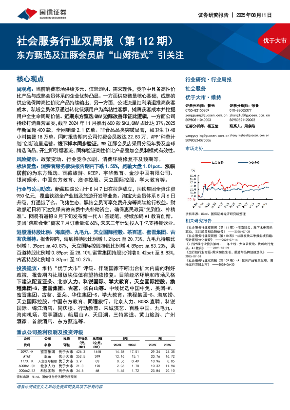【国信证券】【20250811】社会服务行业双周报(第112期):东方甄选及江豚会员店“山姆范式”引关注-10页