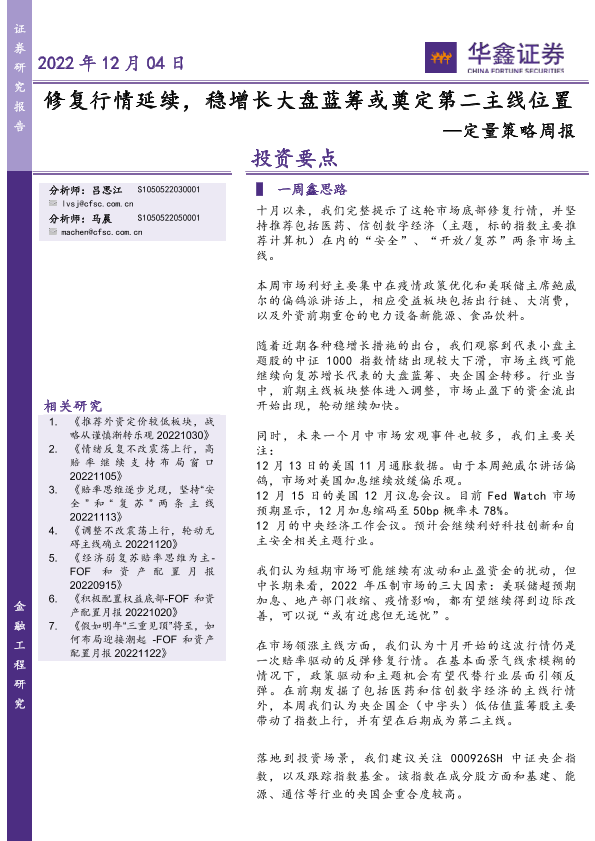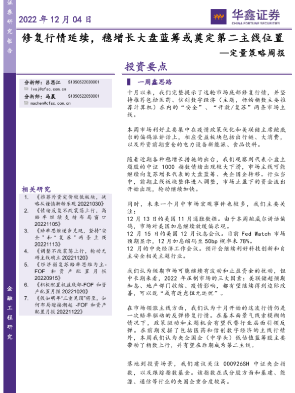 【华鑫证券】【20221204】修复行情延续,稳增长大盘蓝筹或奠定第二主线位置-定量策略周报-24页