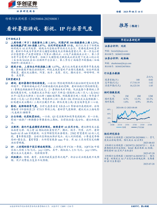 【华创证券】【20250810】传媒行业周观察:看好暑期游戏、影视、IP行业景气度-13页