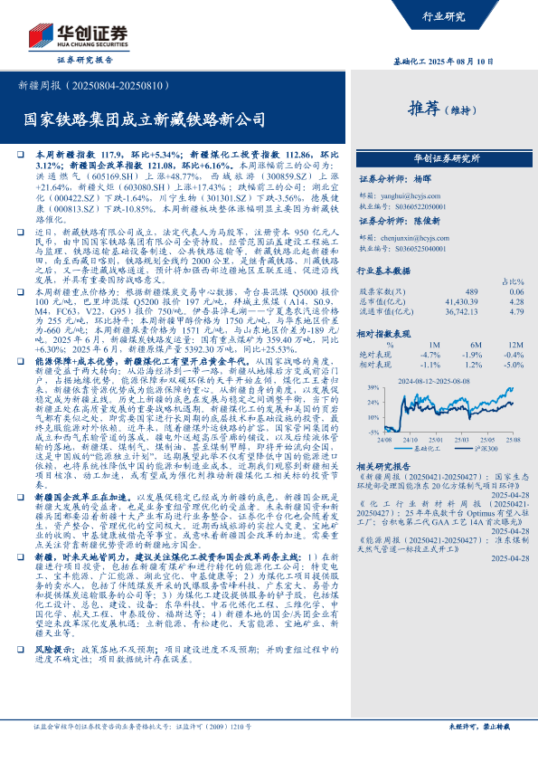 【华创证券】【20250810】基础化工行业新疆周报:国家铁路集团成立新藏铁路新公司-15页