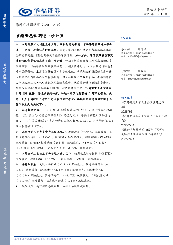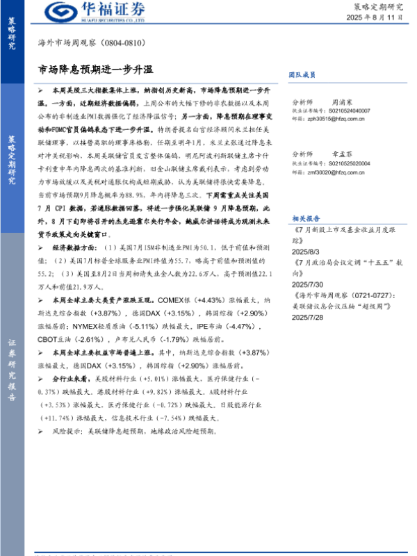 【华福证券】【20250811】海外市场周观察:市场降息预期进一步升温-16页