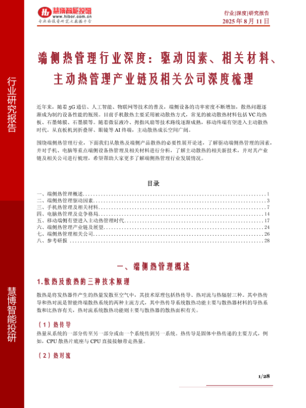 【慧博智能投研】【20250811】端侧热管理行业深度:驱动因素、相关材料、主动热管理产业链及相关公司深度梳理-28页
