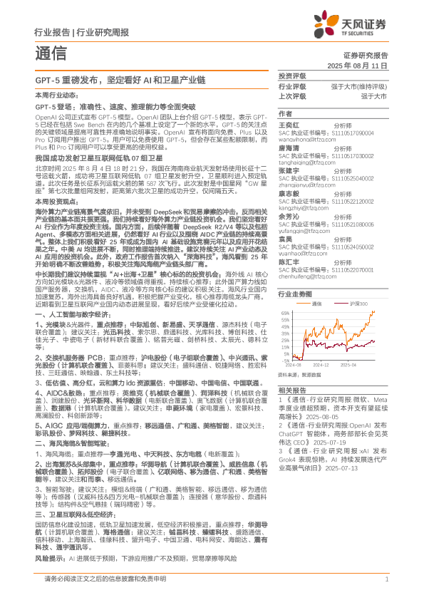 【天风证券】【20250811】通信行业:GPT-5重磅发布,坚定看好AI和卫星产业链-11页