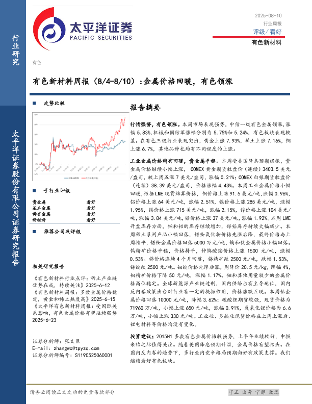 【太平洋证券】【20250810】有色新材料行业周报:金属价格回暖,有色领涨-13页