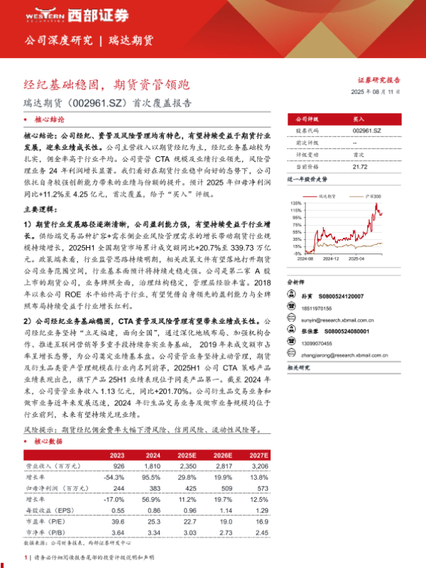 【西部证券】【20250811】瑞达期货-002961-首次覆盖报告:经纪基础稳固,期货资管领跑-24页